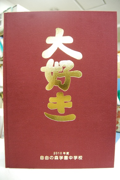 2010年度自由の森学園中学校の卒業アルバムができた。自森的には超ハヤー。一般では卒業式に貰う所が多いが、自由の森では1年くらい経ってから届く。(笑)まあ、ここ数年は年々早くなってきて、卒業後半年で刊行されるものも出て来たが…、だからこそ、4/2卒業、1ヶ月後の発行は超~~なのである。しかもアルバムのタイトルは…「大好き」!!