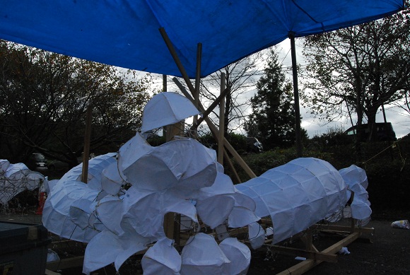今朝は風が強かった。ねぶたを守るテントが強風にばたばた波打った。こんな日に登場するのは、高2ねぶた(神龍)、で決まりでしょう。