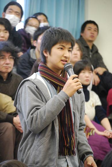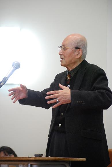 2部構成。第1部は肥田さんの講演。肥田さんの話により、ヒロシマで被爆された人々のナマの姿が、今、ここで眼前にいるように迫ってきた。また、その被爆者の治療や救済・究明のために、「放射能」や「真実を隠そうとする勢力」と闘い続けて来られた一人の人間=何よりも一人ひとりの生命を大切とする、肥田さんの姿が浮かんで来た。第2部は、会場の生徒たちや大学生が「これからを生きてゆくため」の率直な質問を肥田さんへ発し、その質問に、一語一語丁寧に肥田さんがこたえられたクロストーク。